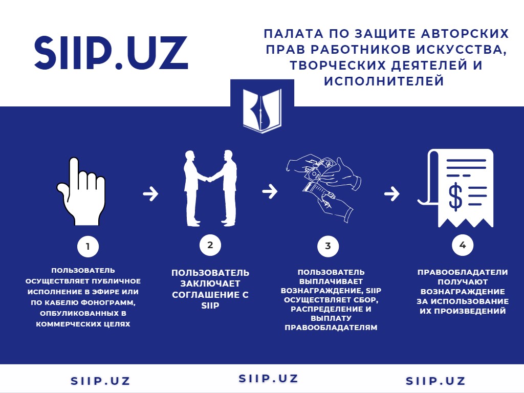 Палата по защите авторских прав работников искусства, творческих деятелей и исполнителей собирает вознаграждение за использование труда авторов в пользу узбекских правообладателей, как на территории Узбекистана, так и за рубежом на основании договоров с аналогичными иностранными организациями.